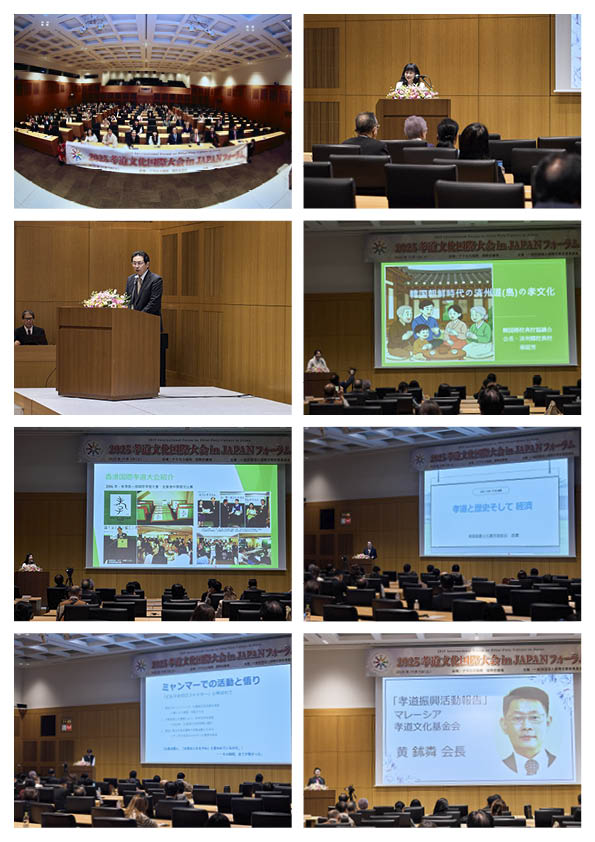 続いて、韓国儒教文化教育館館長・孫潤氏による「孝道と歴史、経済」、日本経済大学特命教授・井本勝幸氏による「孝道と宗教、信仰」の講演、マレーシア孝道文化基金会会長・黄鉥粦氏の活動報告が行われ、盛会のうちに記念撮影と閉会宣言で締めくくられました。