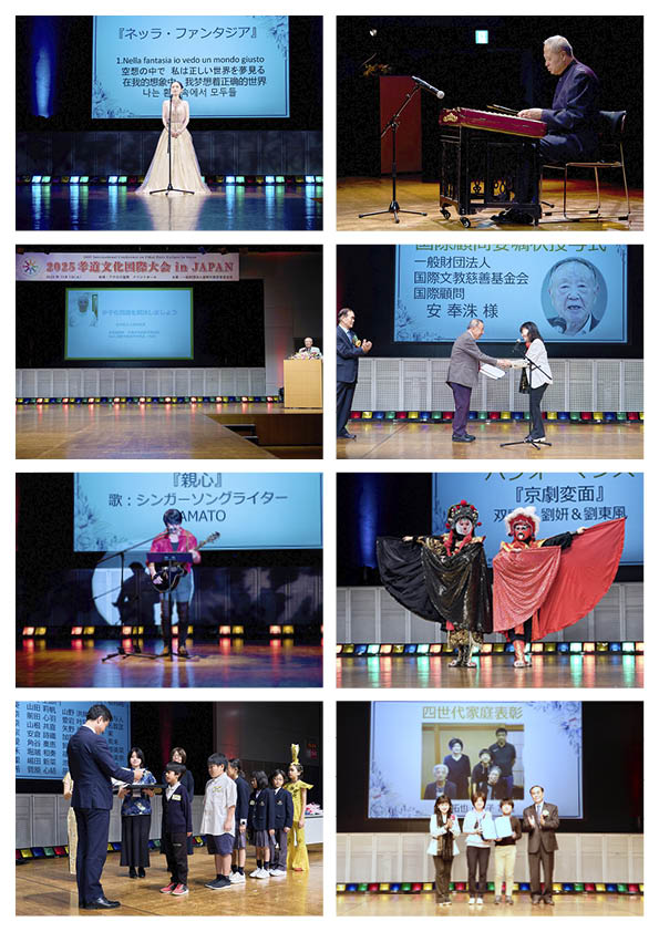 大会では、主催者挨拶に続き、舞踊・歌唱・揚琴演奏など多彩な文芸プログラムが披露され、孝道の精神を芸術を通して表現しました。